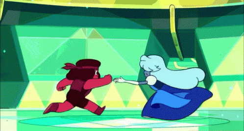 Ruby and Sapphire held each other tight. Tight like they were trying to get closer to each other, as close as skin and blood. So tight that they became light!